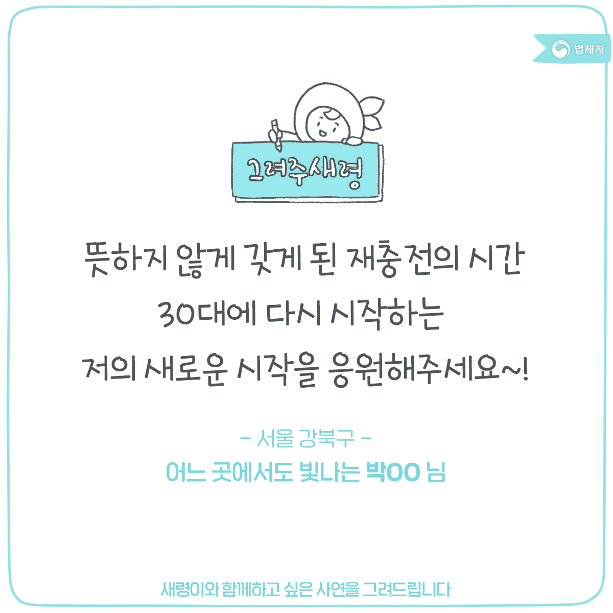▷보내주신 사연은 법령 정보 안내를 위한 "그려주새령" 콘텐츠 제작에만 활용됩니다.