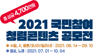 | 한국여성인권진흥원 2021 여성폭력방지 콘텐츠 공모전 - 시상/상금(~0613) - 마감 (0) | 2021.06.07 |
