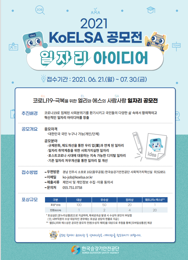 | 한국화학연구원 2021 화학창의콘텐츠 공모전 (캐릭터/영상) - 시상/상금(~0831) - 마감 (0) | 2021.07.16 |