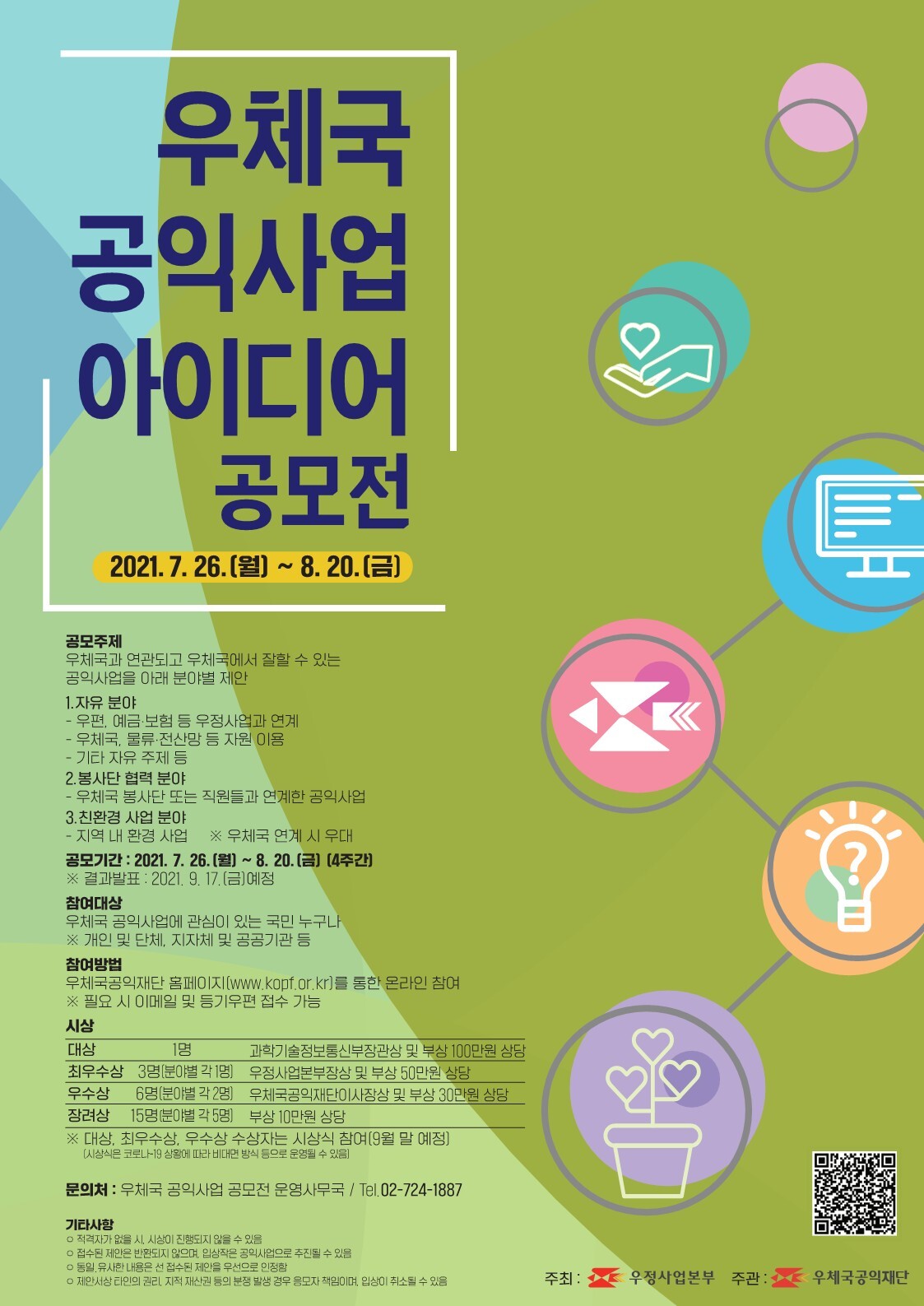 | 한국저작권위원회 저작권 전시체험시설 네이밍 공모전 개최 안내 - 시상/상금/커피 기프티콘(~0813) - 마감 (0) | 2021.07.22 |