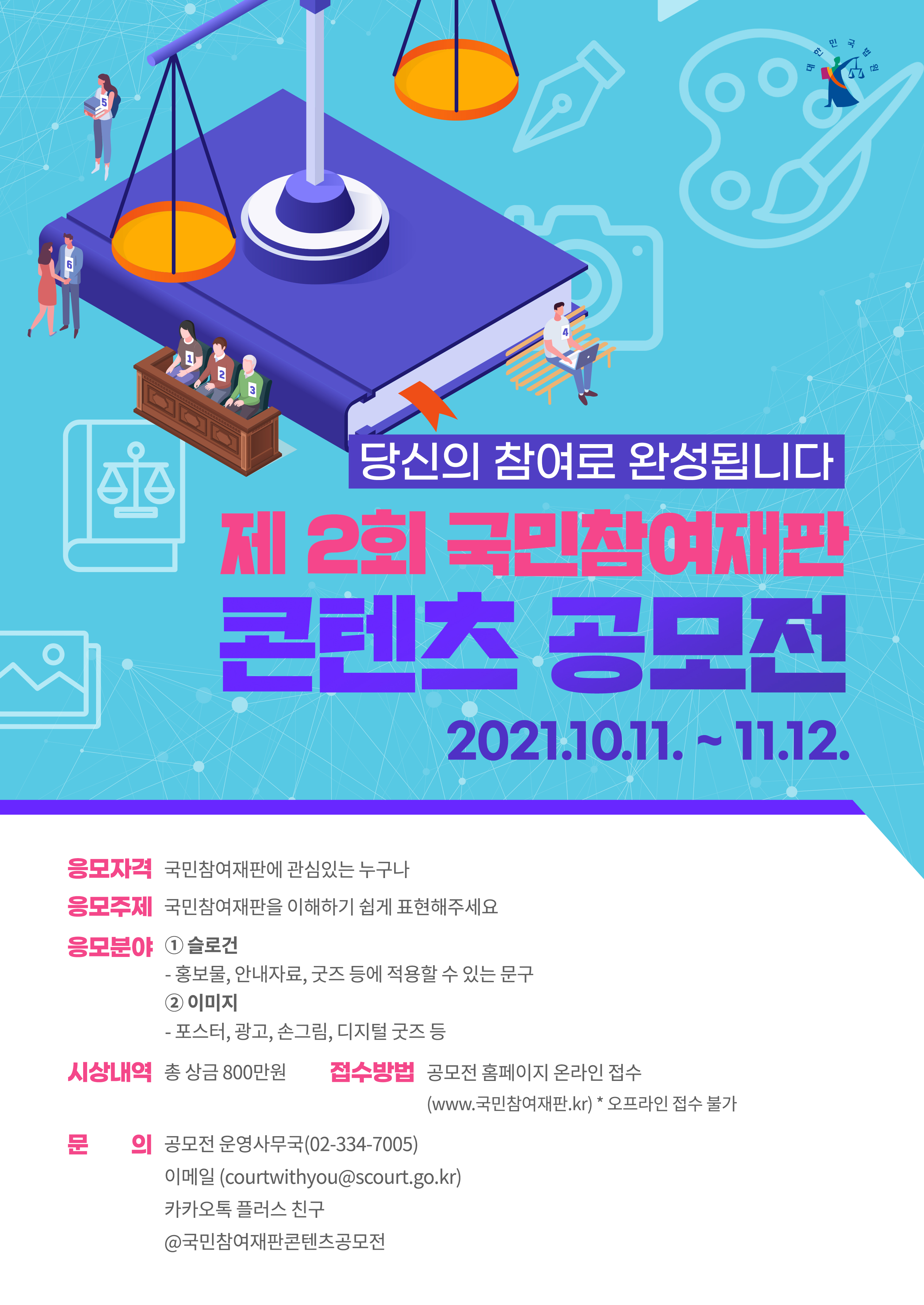 | 제 2회 국민참여재판 콘텐츠 공모전 숨은 배심원찾기 이벤트 개최 - 편의점 모바일상품권 50명(~1022) - 마감 (0) | 2021.10.20 |