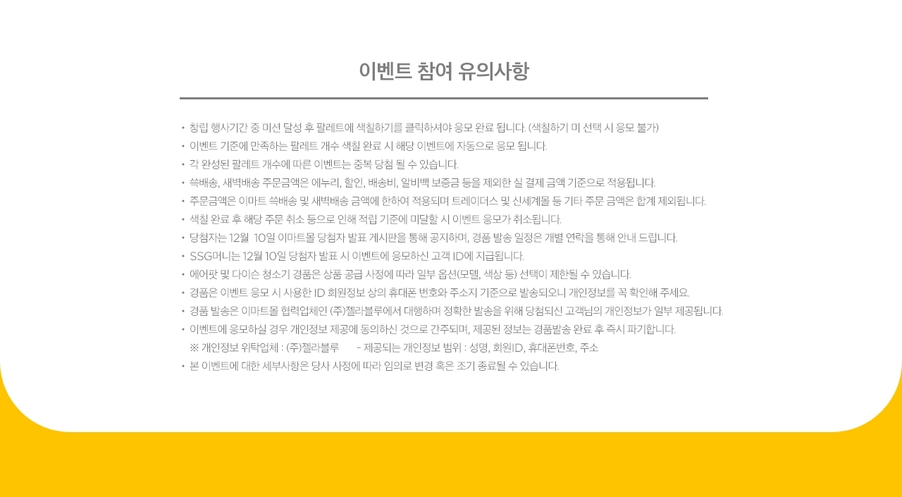 - 창립 행사 기간 내(11월11일~12월1일) 이마트 쓱배송/새벽배송합산 30만원 이상 주문색칠하기