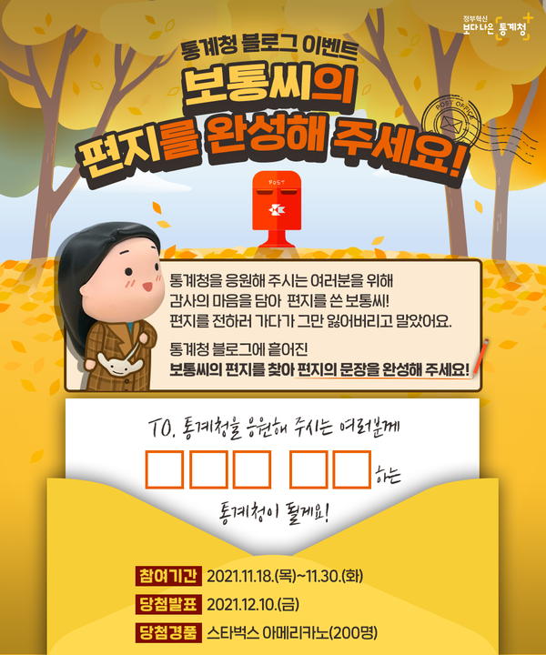 💌보통씨의 잃어버린 편지를 찾아라!💌 통계청을 사랑해주는 여러분을 위해 감사의 마음을 담아 한장 ...