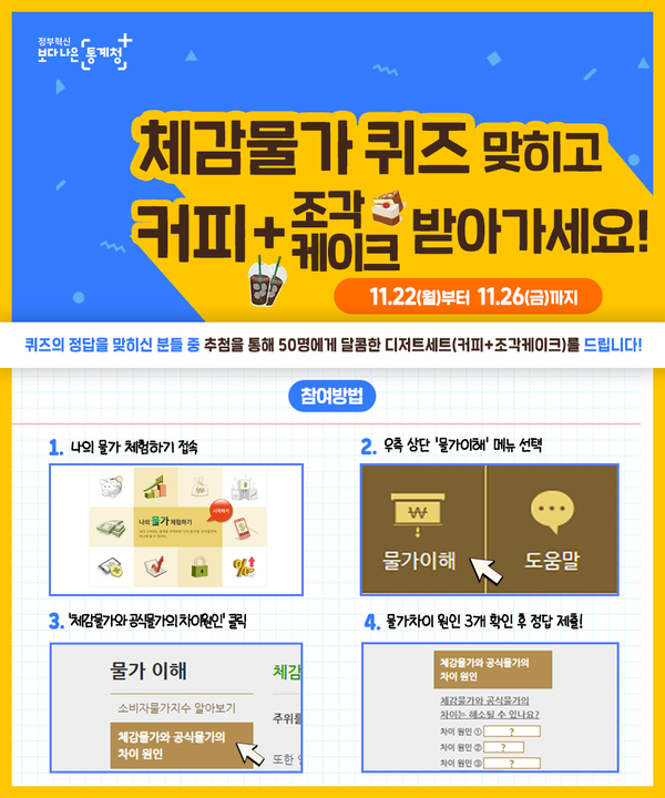‘나의물가체험하기’에서 체감물가와 공식물가 간 차이에 대해 이해를 높이고, 커피+조각케이크 받아가세...