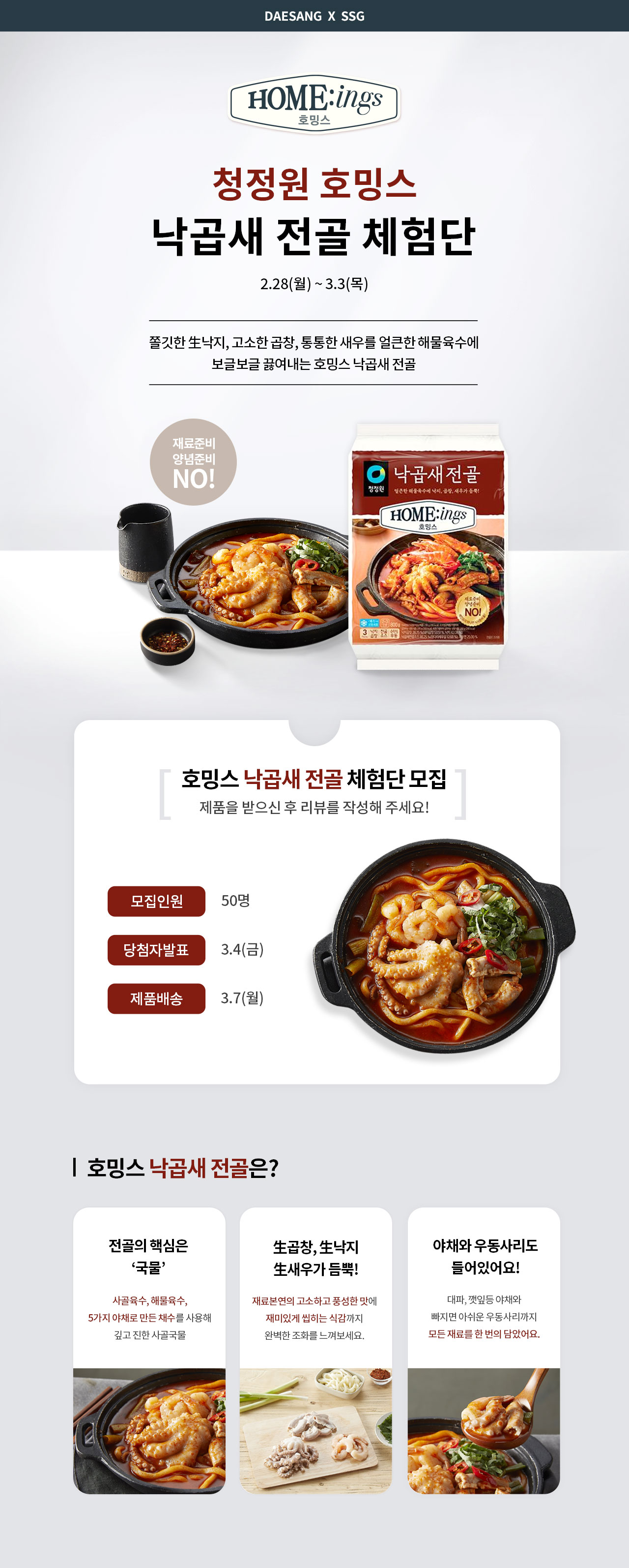 이벤트/쿠폰 > 청정원 _ 호밍스 낙곱새 전골 신상품 체험단 - 이마트몰, 당신과 가장 가까운 이마트 (ssg.com)