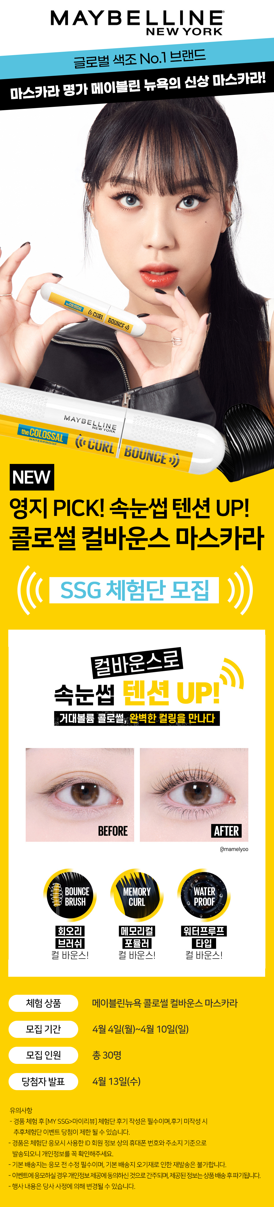 이벤트/쿠폰 > 메이블린 뉴욕 콜로썰 컬바운스 마스카라 체험단모집(30명), 신세계적 쇼핑포털 SSG.COM