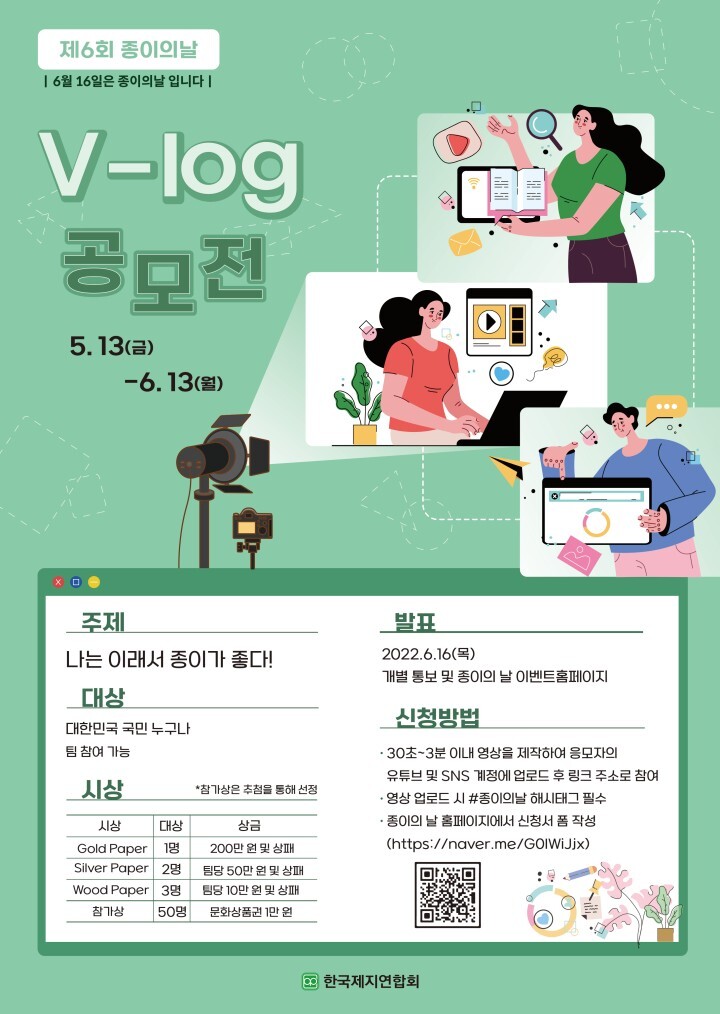 | 제6회 종이의날 폐지 대체 용어 공모전 - 상금/5천원 기프티콘 50명(~0531) - 마감 (0) | 2022.05.22 |